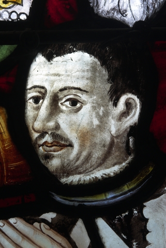 Panneau inférieur droit : le donateur, seigneur de Larlan, détail de la têteImmatriculation