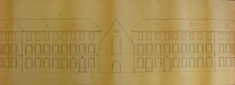 Projet d'agrandissement du Grand Séminaire par J. Caubert de Cléry, non daté : projet pour la façade ouest. Archives de l'Evêché de Vannes Y5.Immatriculation