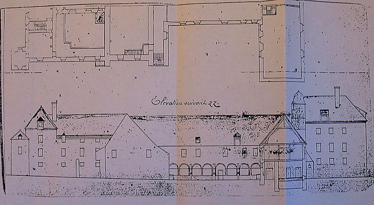 Ancien couvent de Nazareth : élévation en coupe suivant la ligne ZZ du plan de 1823, 1824 (?). Collection privée.Immatriculation