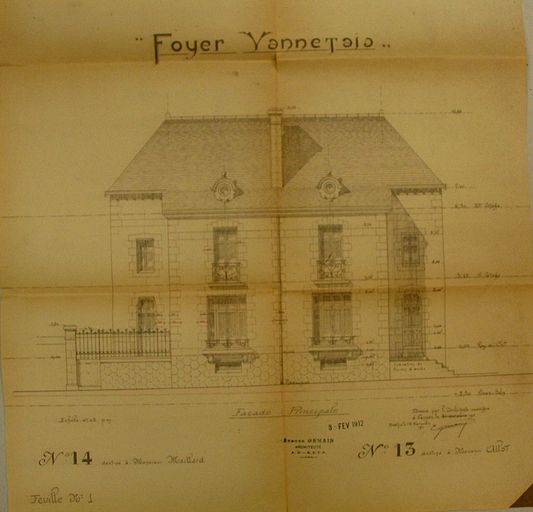 Elévation façades sur rue par Gemain, 1912. AM Vannes 5I162.Immatriculation