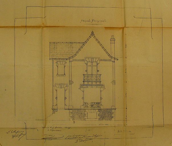 Elévation de la façade sur rue par Le Fèvre, 1914. AM Vannes 5I162.Immatriculation