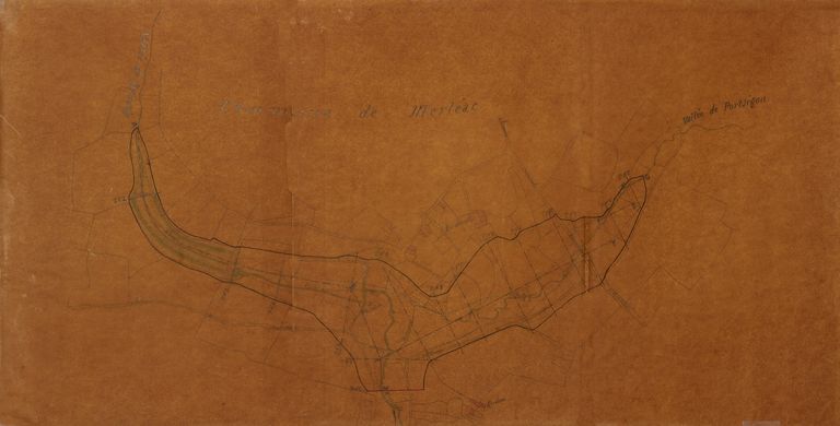 Bassin de Bosméléac. Dessin, par E. Ropert, conducteur des Ponts et Chaussées, 1876. Papier, encre, 20x30.