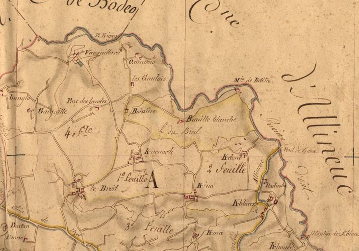 Le site du réservoir de Bosméléac sur le cadastre de 1828, avant la construction du canal