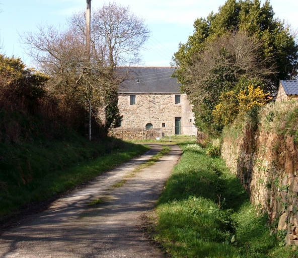Kerbors, Mez-Huel. Image de la ruralité et d'une campagne encore préservée : ancien chemin carrossable et talus-mur constitué de gros blocs de graniteImmatriculation