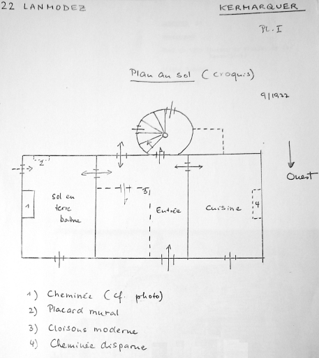 Plan du rez-de-chaussée du logis d'après croquis (pré-inventaire, avril 1977)Immatriculation
