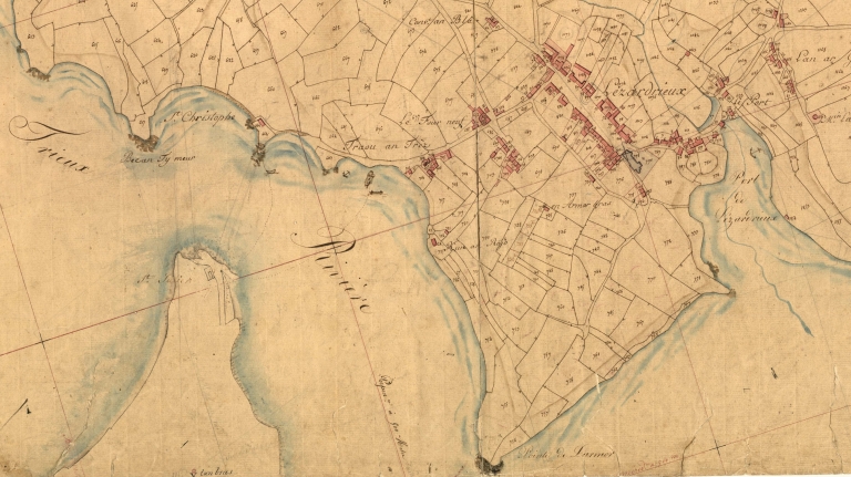 Lézardrieux, le passage Saint-Christophe, le bourg et le port d'après un extrait du cadastre de 1827 (AD 22)Immatriculation
