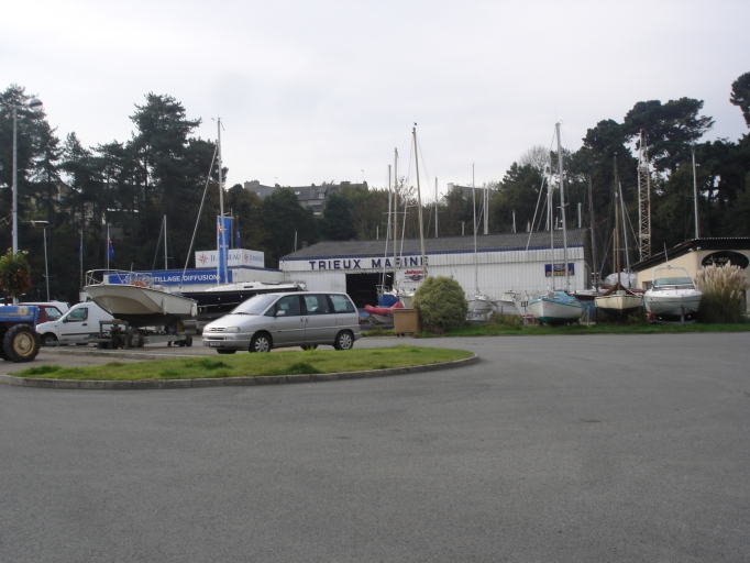Vue des hangars et des magasins d'entretien et de réparation navale en aval du site du ProsternImmatriculation