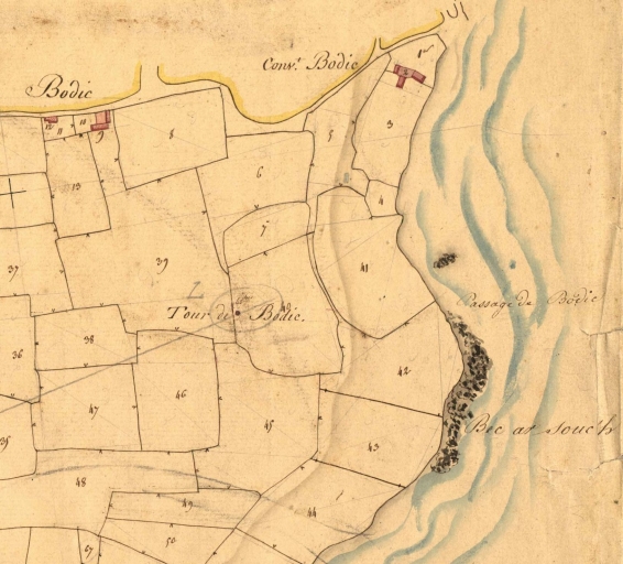 Extrait du cadastre de 1827 : la tour de Bodic (AD 22)Immatriculation