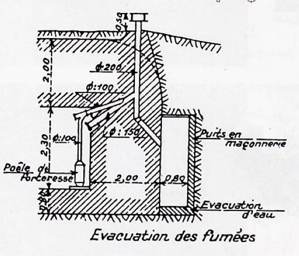 Plan : dispositif d'évacuation des fumées et aération dans un blockhaus (Service Historique de la Défense)Immatriculation