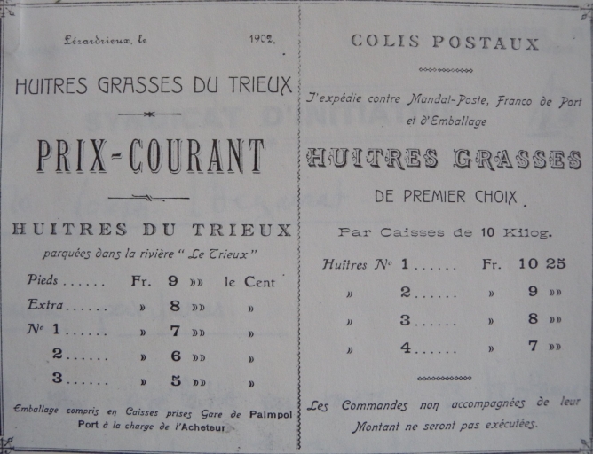 Publicité pour la vente et le prix des huîtres de l'entreprise Guézennec sur le Trieux, 1902 (collection particulière)Immatriculation
