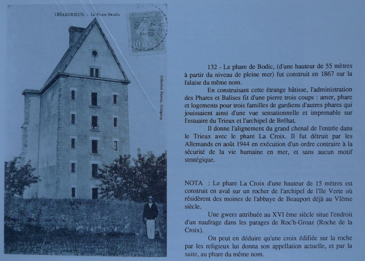 Vue de l'ancien phare de Bodic, vers 1916 (carte postale, collection particulière)Immatriculation