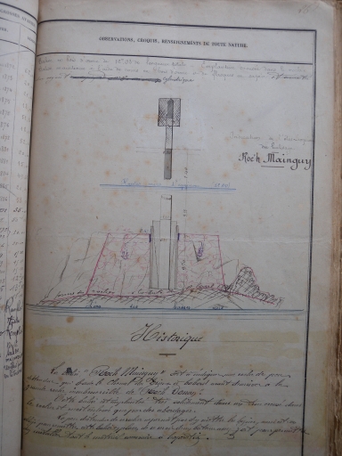 Dessin aquarellé de la perche 'Roc'h Mainguy', 3ème quart 20ème siècle (DDE 22, Service des Phares et Balises)Immatriculation