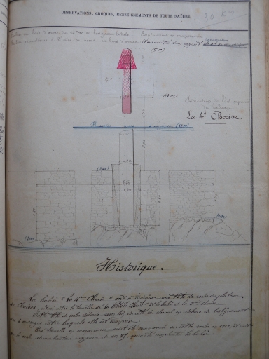 Dessin aquarellé de la perche 'La 4ème Chaise', 3ème quart 20ème siècle (DDE 22, Service des Phares et Balises)Immatriculation