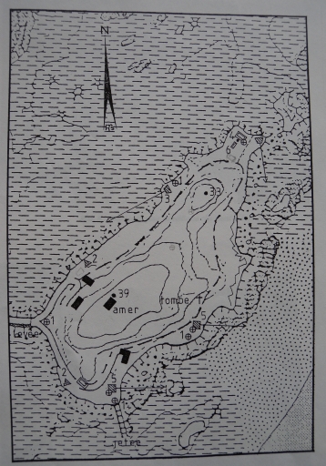 Plan de situation légendé des différentes fortifications de l'Île à Bois : Ringstand, Blockhaus, casemates H667, abri H621, casemates H611, excavation (Bohée, Alain, 2003, collection particulière)Immatriculation