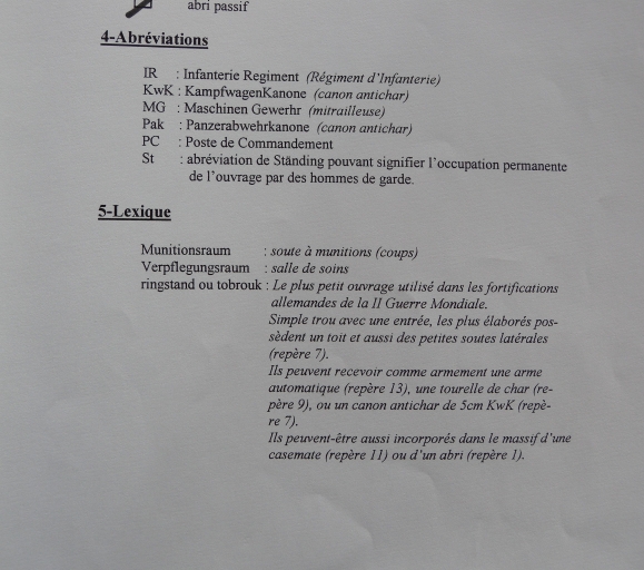 Abrévations et lexique : implantation des construction allemandes sur l'Île à Bois, 2004 (Bohée, Alain, collection particulière)Immatriculation