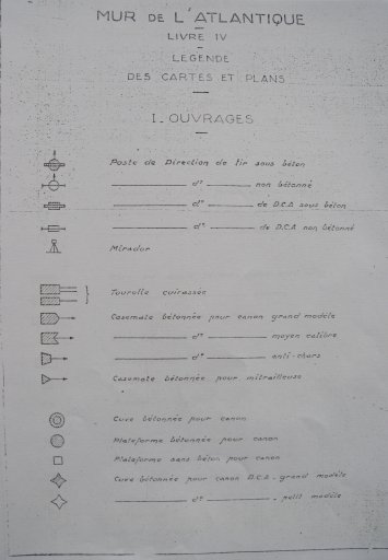 Légendes des cartes et plans du Mur de l'Atlantique, dont le plan de la fig. n°5 (Service Historique de la Défense)Immatriculation