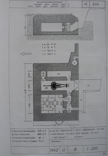 Plan, 1942 : garage pour canon anti tank, type H 604 (Service Historique de la Défense)Immatriculation