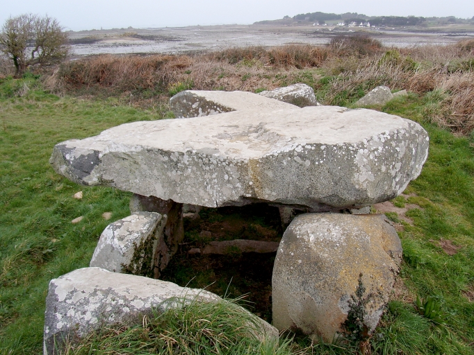 Kerbors, vue générale des restes de l'allée couverte de Mez-ar-Rompet (néolithique)Immatriculation