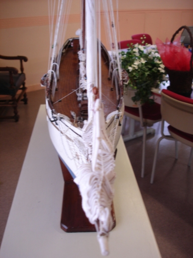 Vue des formes de l'avant et du bout-dehors gréé avec ses voilesImmatriculation
