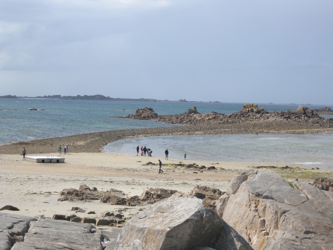 Vue du cordon de galets (tombolo) qui relie l'Île Blanche au Nord-Ouest de ort-la-ChaîneImmatriculation