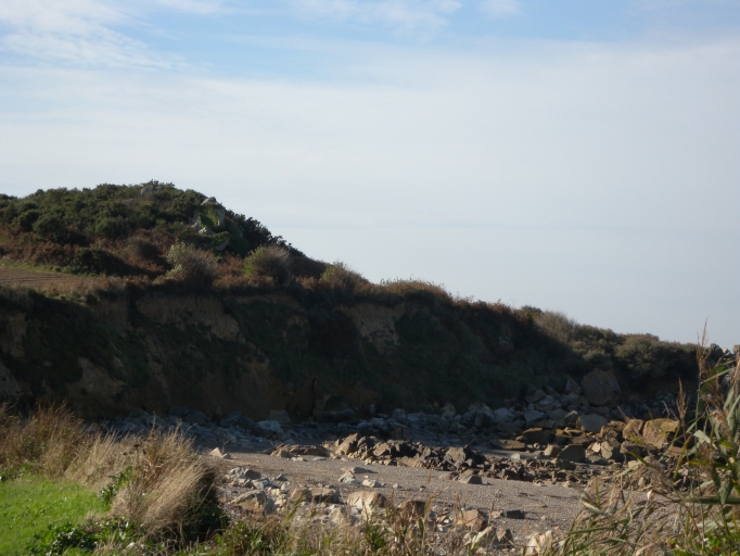 Vue du phénomène d'érosion au niveau de la falaise quaternaire, qui supporte le sentier littoral et les champs cultivésImmatriculation