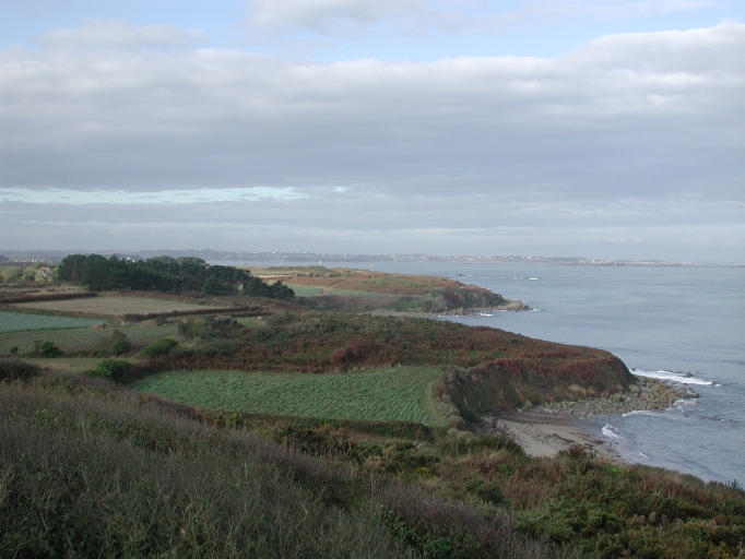 Vue du front de mer bocager, en bord de falaise, vers La côte Sud-Ouest de Creac'h MaoutImmatriculation