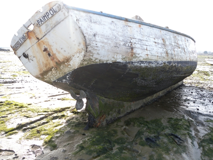 Vue du bateau au sec : remarquer la rablure rondeImmatriculation