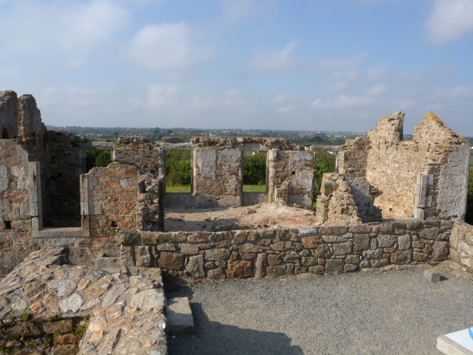 Vue de l'ensemble du bâtiment principal en ruine, depuis la plateforme d'orientationImmatriculation