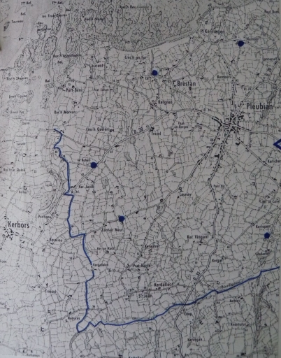 Localisation des croix et fontaines repérés en 1977 sur la commune de Pleubian (SRI Bretagne)Immatriculation