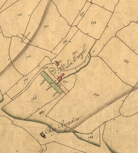Extrait du cadastre de 1829 : le moulin à vent de Trezel : D1ère feuille 692-694 (AD 22)Immatriculation