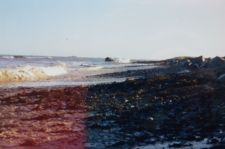 Vue des croissants de galets qui remontent la crête du Sillon, jour de tempête, vers 1990 (collection particulière)Immatriculation