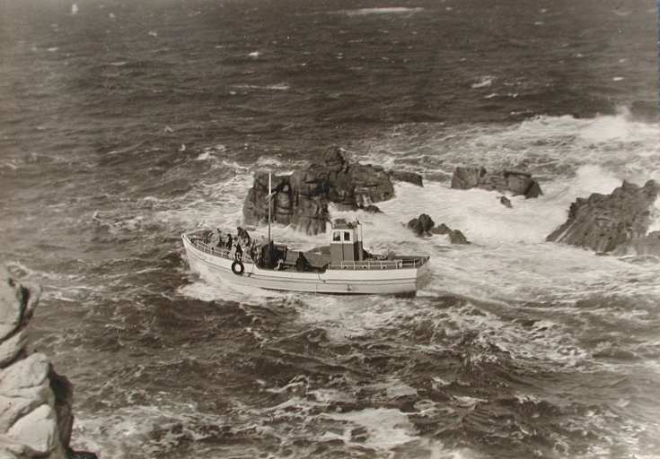 Vue d'une vedette dans le 'raz du Paon', 3ème quart 20ème siècle (collection particulière)Immatriculation