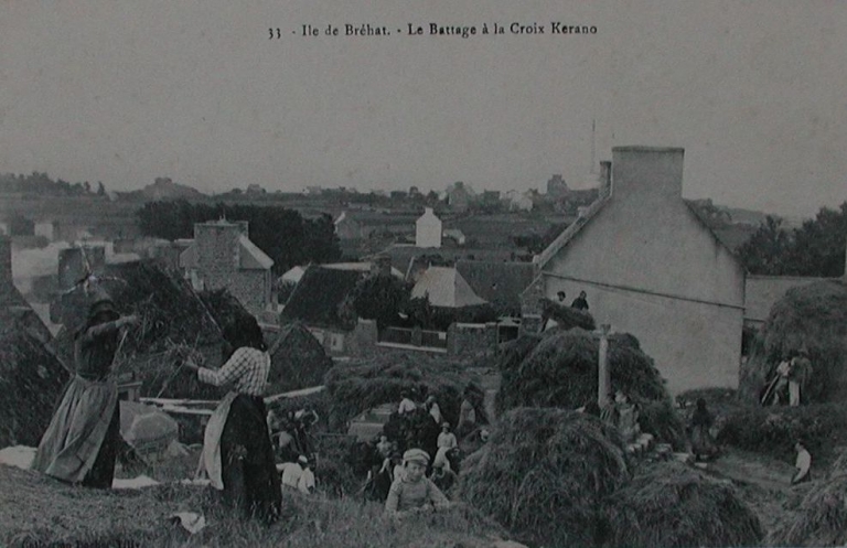 Scène de battage à la Croix de Kerano, 1er quart 20ème siècle (carte postale, collection particulière)Immatriculation