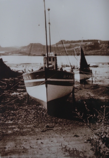 Vue dans l'anse de Nod Goven : en 1er plan du bateau langoustier 'Paul Langevin' et en arrière plan du caseyeur 'l'Angélus', en 1963 (collection particulière)Immatriculation