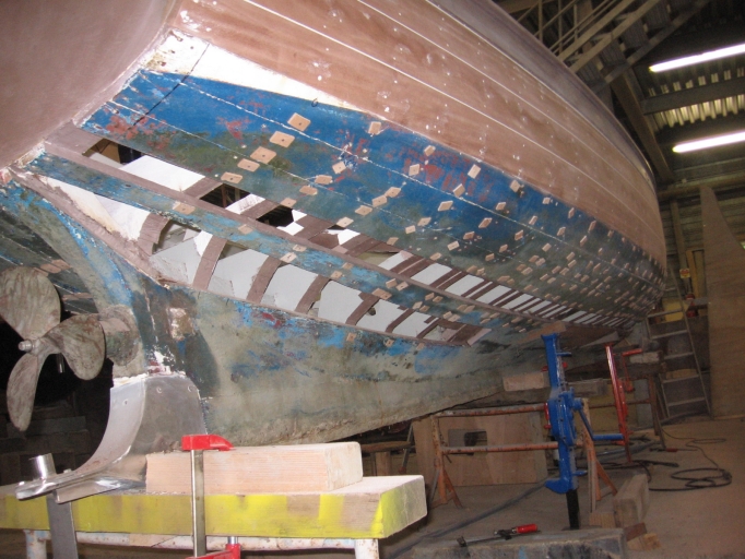 Changement du ribord, 2ème bordé sur la quille (collection particulière, Benoit Le Bideau)Immatriculation