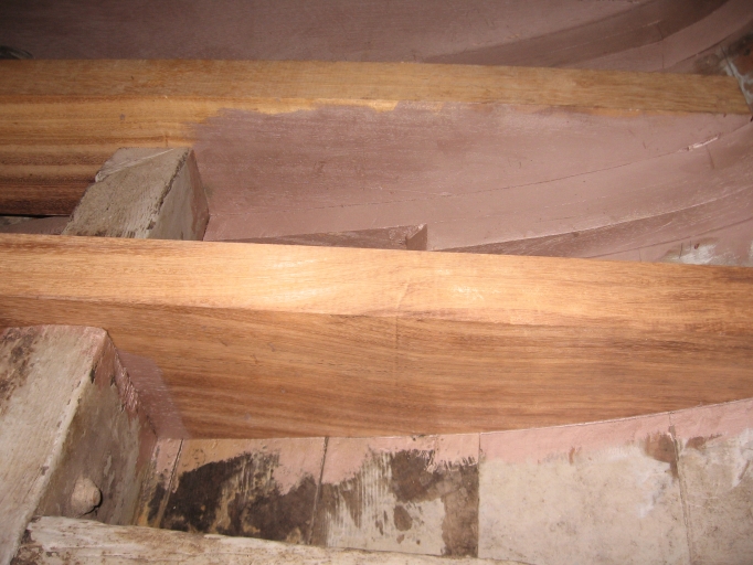 Vue de détail d'une varangue en bois massif (collection particulière, Benoit Le Bideau)Immatriculation