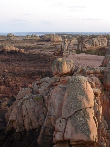 Vue des deux pyramides du Nord-Est en aligement, entre Morbic et QuistillicImmatriculation