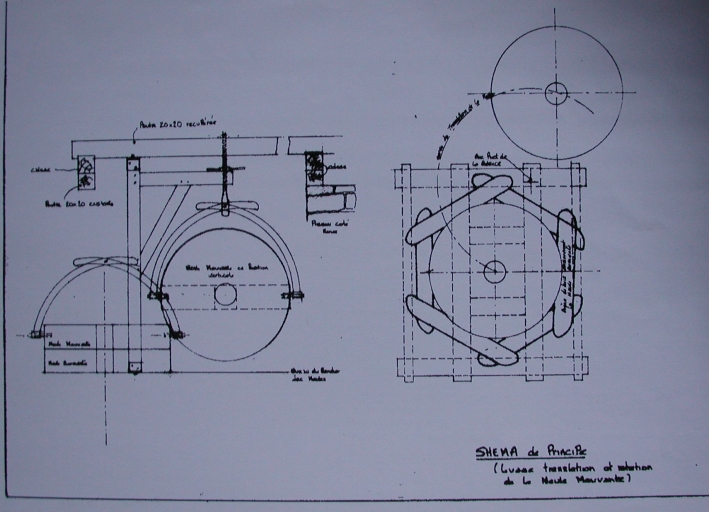 Plan : principe de fonctionnement des meules, 1995 (Jean Peillet, collection particulière)Immatriculation