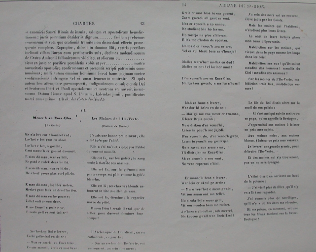 Copie de la gwerz de l'île Verte 'Les moines de l'Île Verte', non datée (collection particulière)Immatriculation