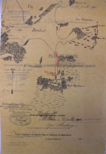 Plan : projet de cale de débarquement privée au Guerzido, Roc'h Guenanec, par l'artiste peintre Bourguoin, 1939 (AD 22)Immatriculation