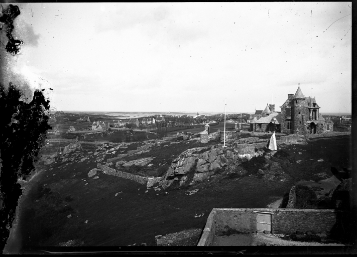 Vue du site fortifié de Crec'h Gwen : le corps de garde dans la propriété De Haënen, 1er quart 20ème siècle (Barat, AD 22)Immatriculation