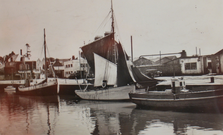 Le front de port, quai Duguay Trouin, avec le garage Le Lyonnais, vers 1950 (carte postale, collection particulière)Immatriculation