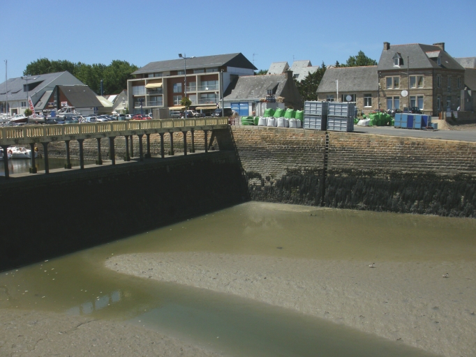 Vue de la passerelle du déversoir à marée basse et du quai des BréhatinsImmatriculation