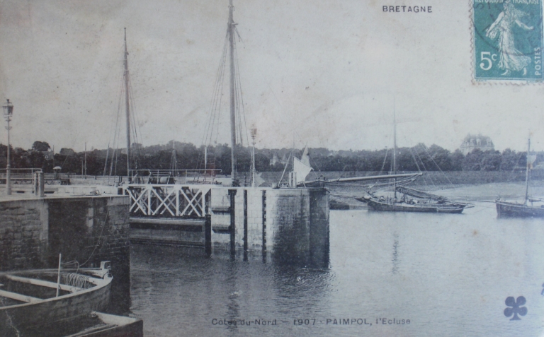 Vue de l'avant-port de Paimpol : la nouvelle écluse et la digue du Champ de Foire, 1er quart 20ème siècle (collection particulière)Immatriculation