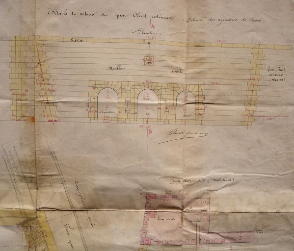 Plan : détail de retour des quais Ouest extérieurs, débouché des aqueducs de chasse, 1882 (AD 22)Immatriculation