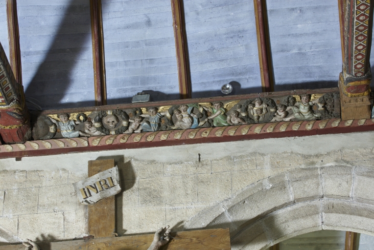 Intérieur, mur sud de la nef, détail de la sablièreImmatriculation