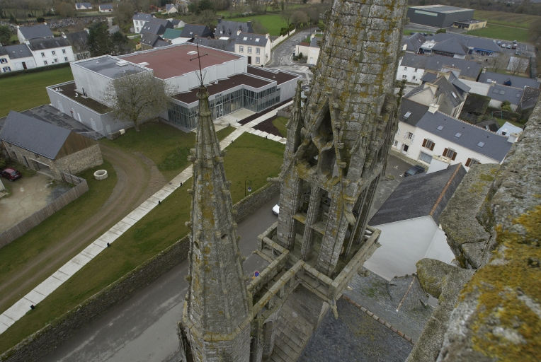 Elévation ouest, détail de la galerie liant la tour d'escalier au clocher, vue depuis le haut de la tour-porcheImmatriculation
