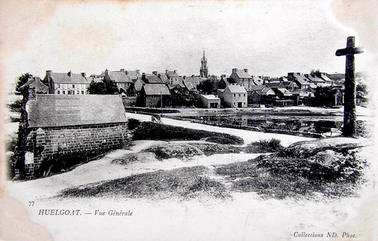 Vue du bourg depuis le nord. Carte postale, vers 1900 (A.D. Finistère, 2 Fi 81)Immatriculation
