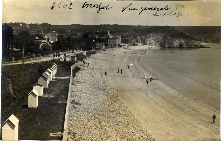 Morgat, vue générale de la plage, début 20e siècle. Photograhie ancienne (Fonds Villard)Immatriculation