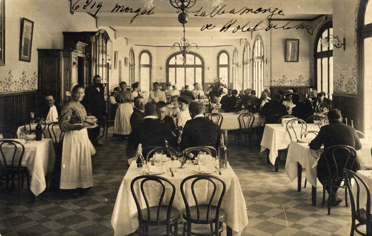 Le Grand Hôtel de la Mer. Vue intérieure de la salle à manger. Photographie ancienne (Fonds Villard)Immatriculation